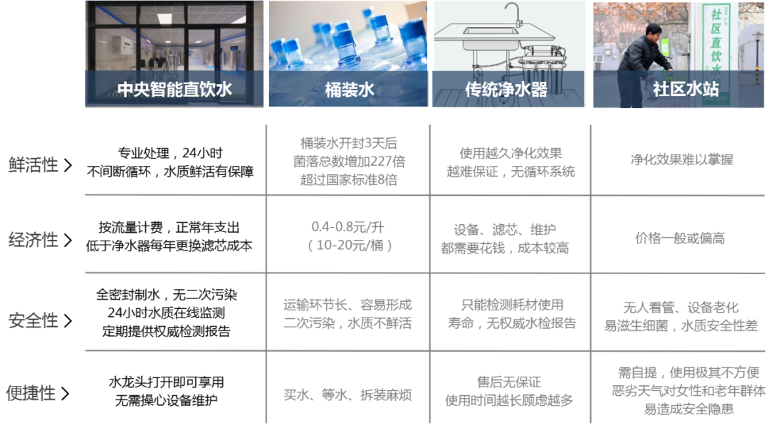 說實話,有時候我甚至有一些嫉妒那些被業主們選擇的傳統凈水器、飲水站和桶裝水,為什么我有著那么多他們不可比擬的優勢,卻沒有得到應有的擁護和支持?我才是健康、安全飲水的最佳選擇啊!有時候我也時常感到痛心,為什么我有能力避免那些不必要發生的團體飲水安全事故,減少人們因為飲用不健康的水帶來的病毒折磨,卻始終得不到一個大顯身手的機會!