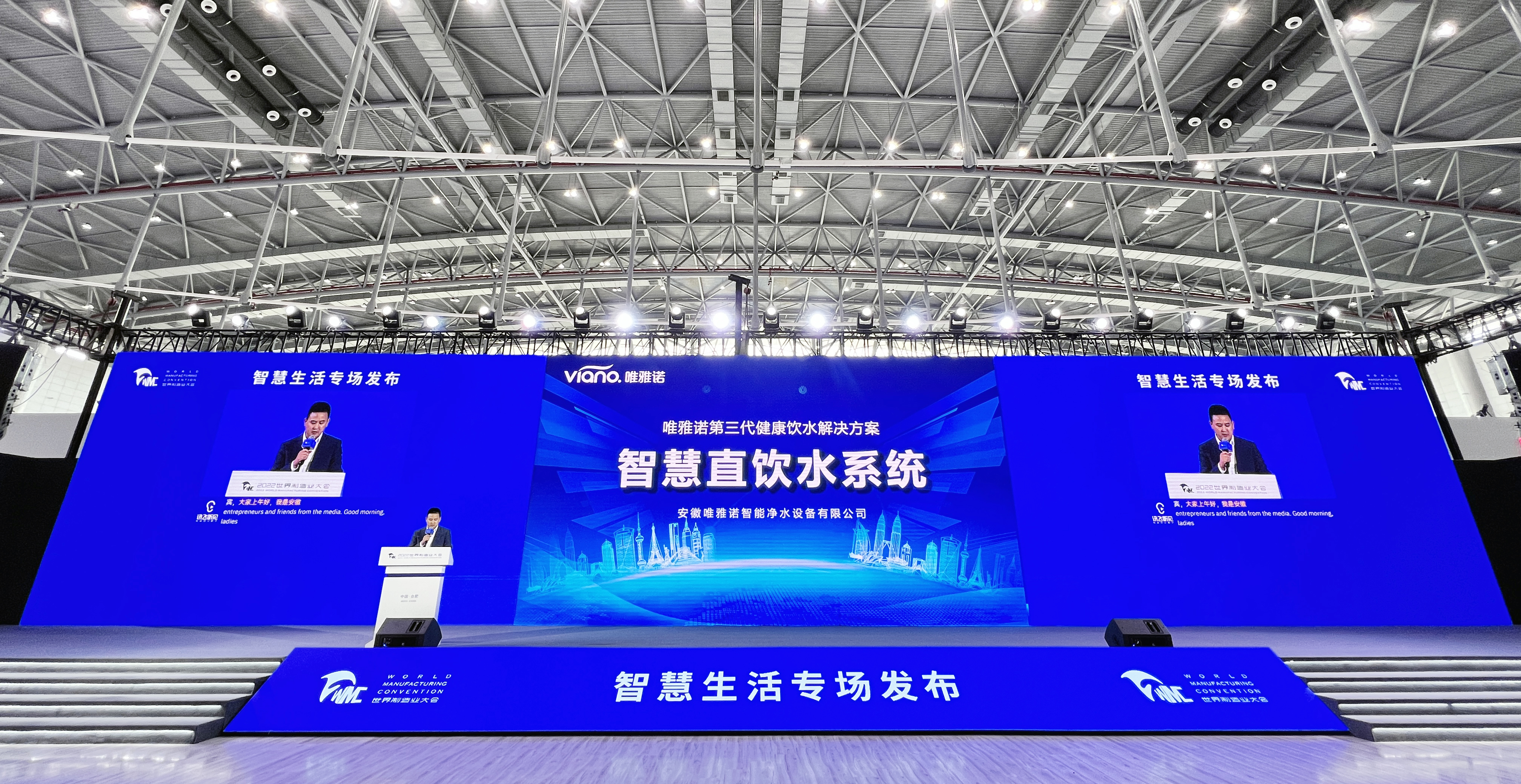 安徽唯雅諾智能凈水設(shè)備有限公司作為本次大會(huì)專(zhuān)場(chǎng)發(fā)布的受邀企業(yè)之一,于9月21日上午亮相大會(huì)“智慧生活專(zhuān)場(chǎng)”發(fā)布活動(dòng)。唯雅諾董事長(zhǎng)何中義在發(fā)布活動(dòng)中向全球大會(huì)觀眾介紹和展示了全新一代的高品質(zhì)飲水系統(tǒng)解決方案—唯雅諾智能管道直飲水系統(tǒng)。